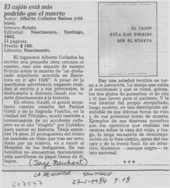 "El cajón está más podrido que el muerto" [artículo] Jorge Marchant.