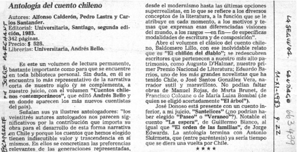 Antología del cuento chileno [artículo] Jorge Marchant.
