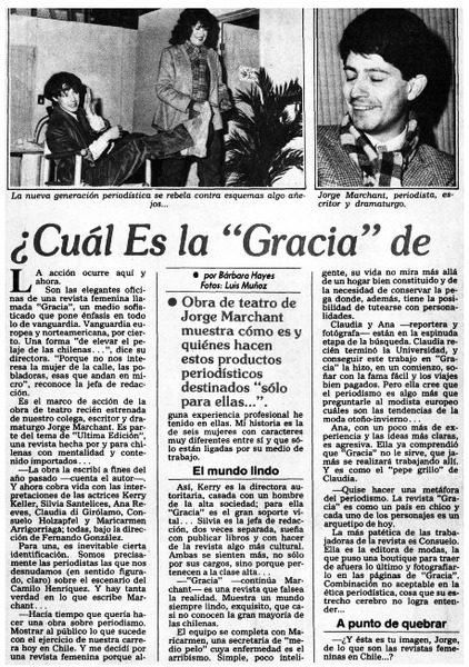 Cuál es la "gracia" de las revistas femeninas? : [entrevista] [artículo] Bárbara Hayes.