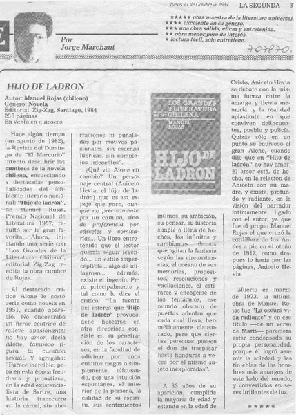 Autores chilenos - Rojas, Manuel - Hijo de ladrón