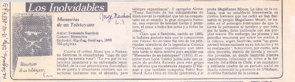 Memorias de un tolstoyano [artículo] Jorge Marcahnt L.