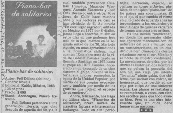 Autores chilenos - Délano, Poli - Piano-bar de solitarios