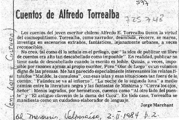 Cuentos de Alredo Torrealba [artículo] Jorge Marchant Lazcano.