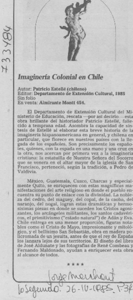 Autores chilenos - Estellé, Patricio - Imaginería colonial en Chile
