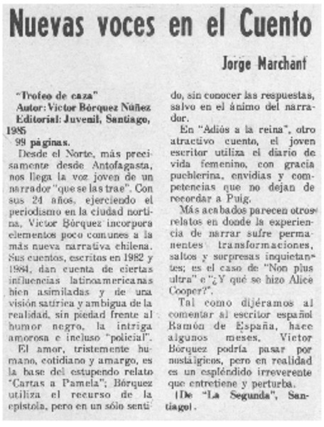 Nuevas voces en el cuento [artículo] Jorge Marchant.