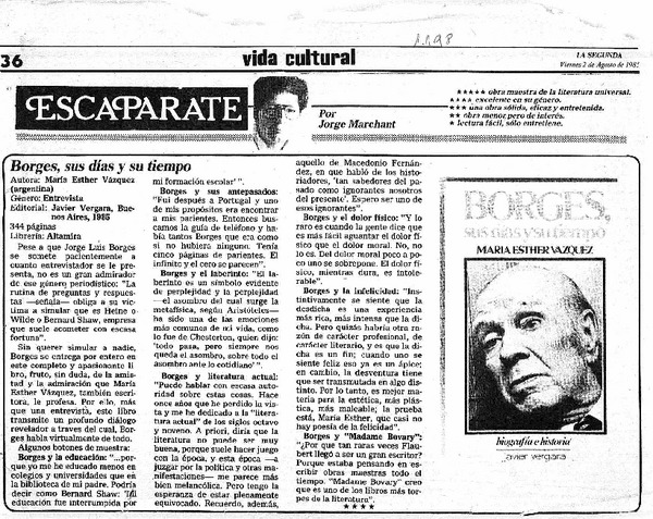 Borges, sus días y su tiempo [artículo] Jorge Marchant.