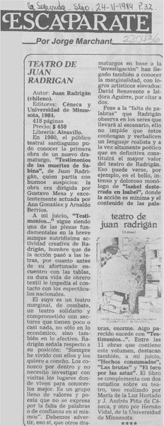Teatro de Juan Radrigán [artículo] Jorge Marchant.