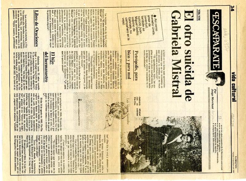 El otro suicida de Gabriela Mistral [artículo] Jorge Marchant.