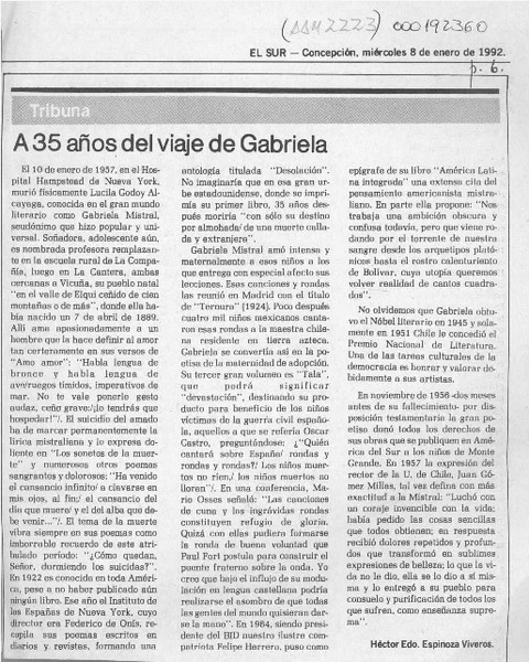 A 35 años del viaje de Gabriela [artículo] Héctor Edo. Espinoza Viveros.