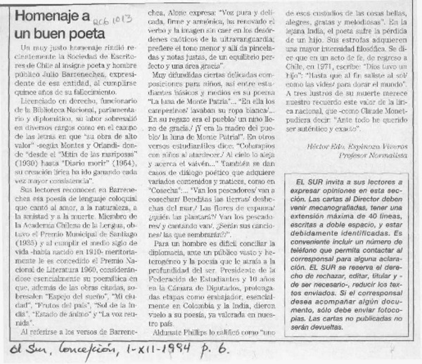 Homenaje a un buen poeta [artículo] Héctor Edo. Espinoza Viveros profesor Normalista.