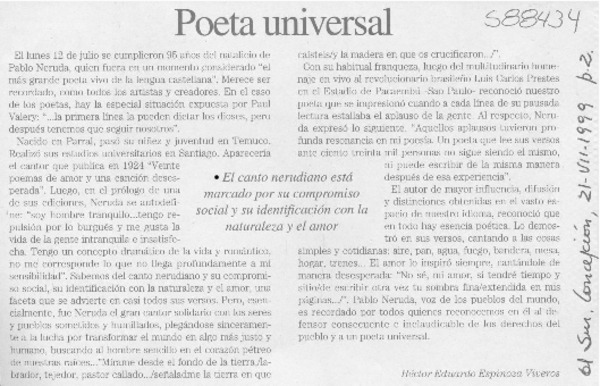 Pablo Neruda [artículo] Héctor E. Espinoza Viveros.