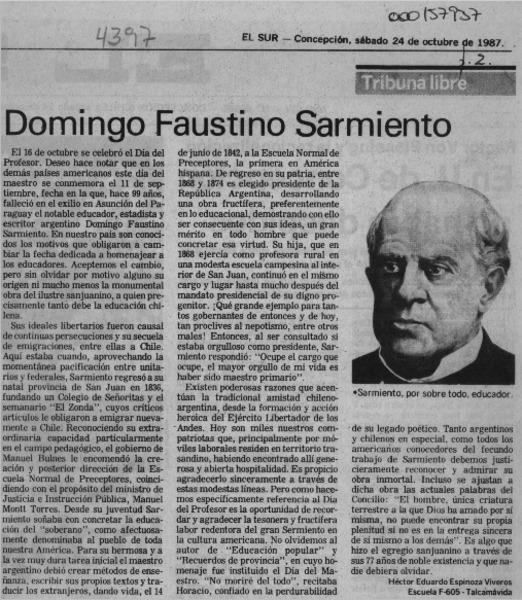 Domingo Faustino Sarmiento [artículo] Eduardo Héctor Espinoza Viveros.