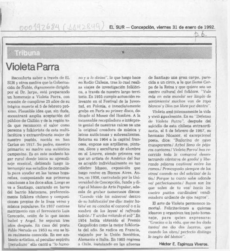 Recordando a Violeta Parra [artículo] Héctor Edo. Espinoza Viveros.