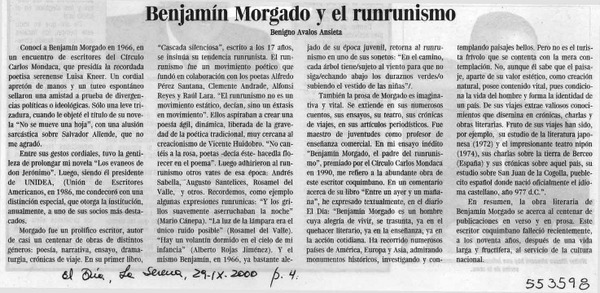 Benjamín Morgado y el runrunismo [artículo] Benigno Ávalos Ansieta