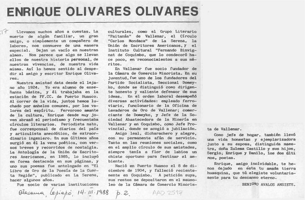Enrique Olivares Olivares [artículo] Benigno Avalos Ansieta.