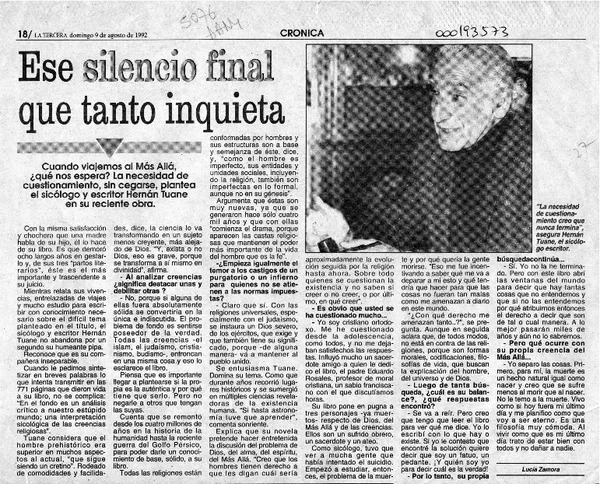 Ese silencio final que tanto inquieta [artículo] Lucía Zamora.