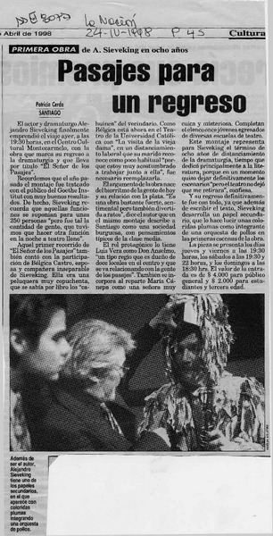 Pasajes para un regreso [artículo] Patricia Cerda.