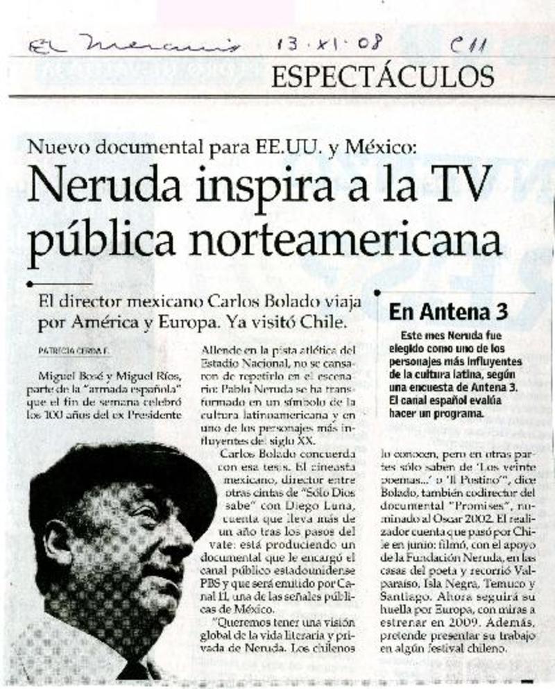 Neruda inspira a la TV pública norteamericana [artículo] Patricia Cerda F.