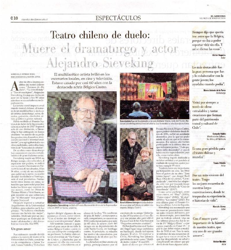 Teatro chileno de duelo : Muere el dramaturgo y actor Alejandro Sieveking [artículo] Patricia Cerda.