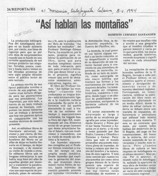 "Así hablan las montañas" [artículo] Roberto Lehnert Santander.