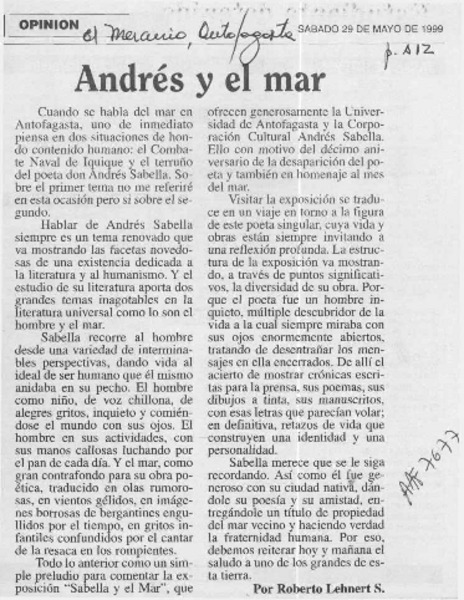 Andrés y el mar [artículo] Roberto Lehnert S.