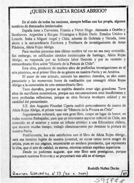 Quién es Alicia Rojas Abrigo? [artículo] Rodolfo Nuñez Durán.