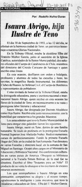 Homenaje a Isaura Abrigo [artículo] Rodolfo Núñez Durán.
