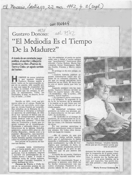 Gustavo Donoso, "El mediodía es el tiempo de la madurez" [artículo] María Teresa Cárdenas M.