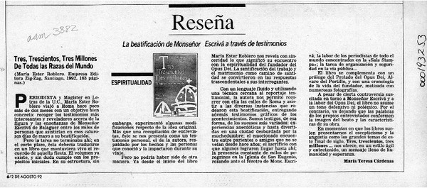 Tres, trescientos, tres millones de todas las razas del mundo [artículo] María Teresa Cárdenas.