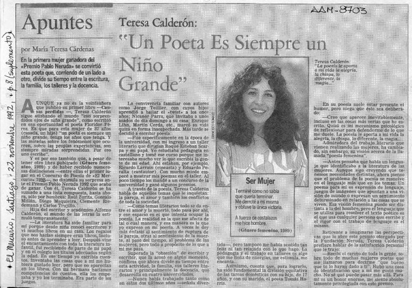 "Un poeta es siempre un niño grande" [artículo] María Teresa Cárdenas.