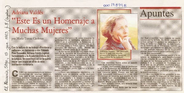 "Este es un homenaje a muchas mujeres" [artículo] María Teresa Cárdenas.