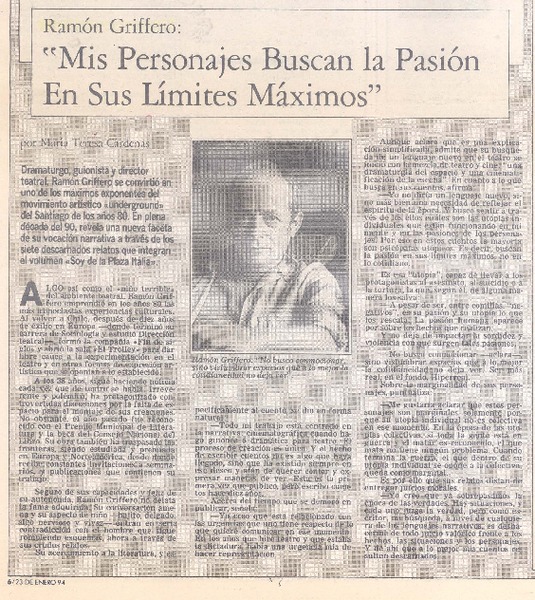 Mis personajes buscan la pasión en sus límites máximos" [artículo] María Teresa Cárdenas.