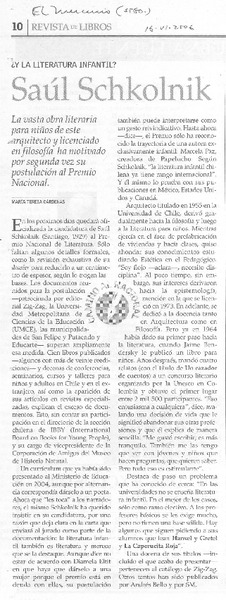 Saúl Schkolnik [artículo] María Teresa Cárdenas.