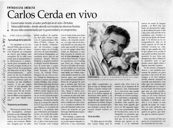 Carlos Cerda en vivo [artículo] María Teresa Cárdenas