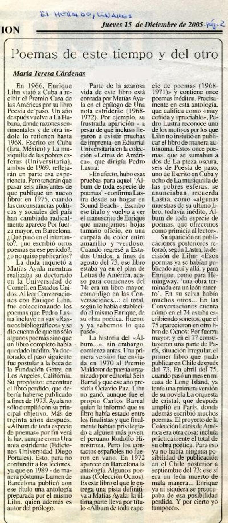 Poemas de este tiempo y del otro [artículo] María Teresa Cárdenas.