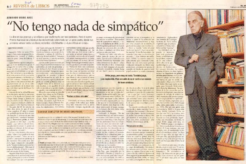 Armando Uribe Arce " No tengo nada de simpático" [artículo]. María Teresa Cárdenas
