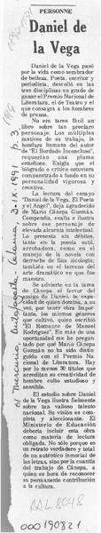 Autores chilenos - Vega, Daniel de la - Cánepa Guzmán, Mario - Daniel de la Vega, el poeta y el ángel