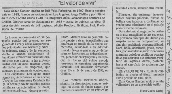 "El valor de vivir" [artículo] Eliana Godoy Godoy.