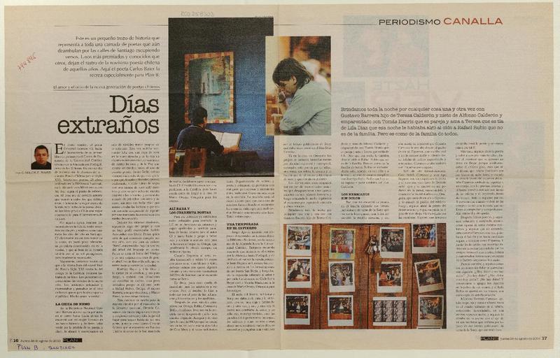 Días extraños el amor y el odio de la nueva generación de poetas chilenos [artículo] : Carlos E. Baier.