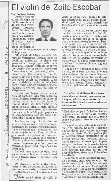El violín de Zoilo Escobar [artículo] Lautaro Robles.