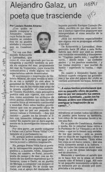 Alejandro Galaz, un poeta que trasciende [artículo] Lautaro Robles Alvarez.