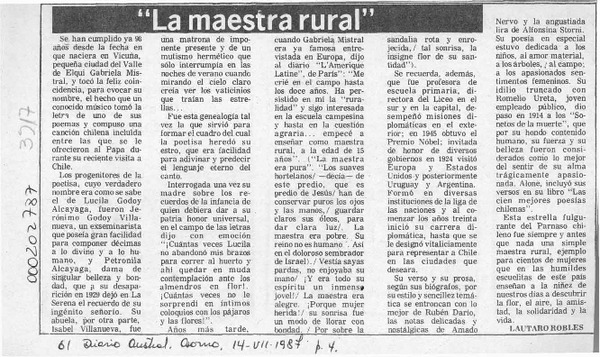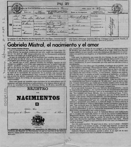 Qué día nació Gabriela? [artículo] Lautaro Robles Alvarez.