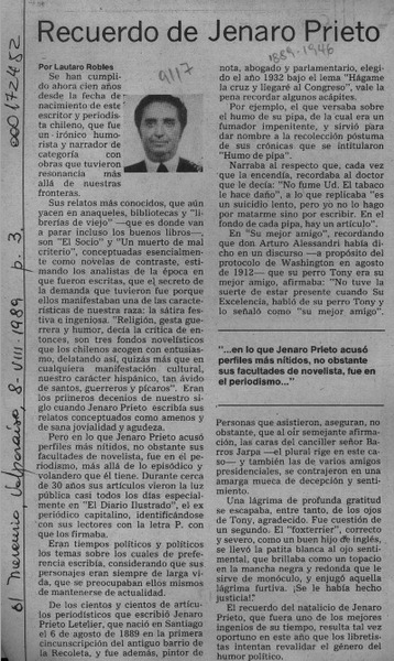 Recuerdo de Jenaro Prieto [artículo] Lautaro Robles.