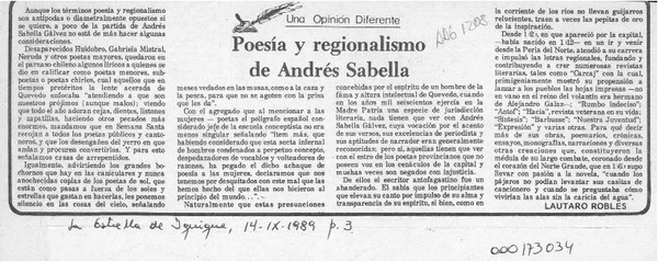 Poesía y regionalismo de Andrés Sabella [artículo] Lautaro Robles.