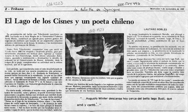 El Lago de los Cisnes y un poeta chileno [artículo] Lautaro Robles.