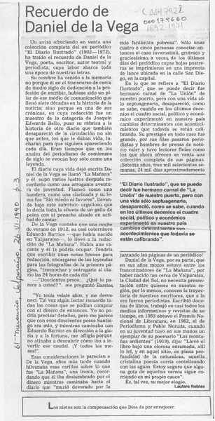 Recuerdo de Daniel de la Vega [artículo] Lautaro Robles.
