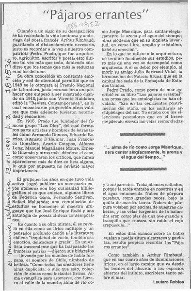"Pájaros errantes" [artículo] Lautaro Robles.