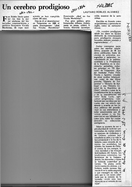 Un cerebro prodigioso [artículo] Lautaro Robles Alvarez.