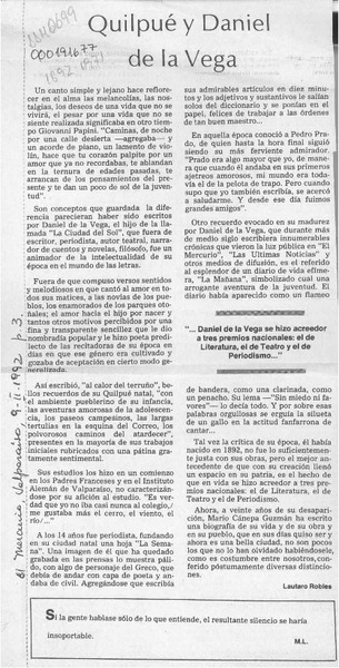 Quilpué y Daniel de la Vega [artículo] Lautaro Robles.
