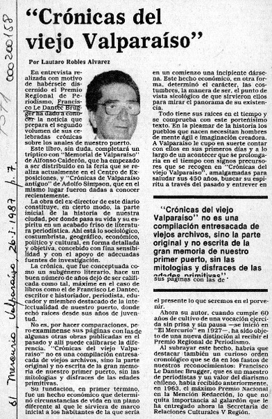 "Crónicas del viejo Valparaíso" [artículo] Lautaro Robles Alvarez.